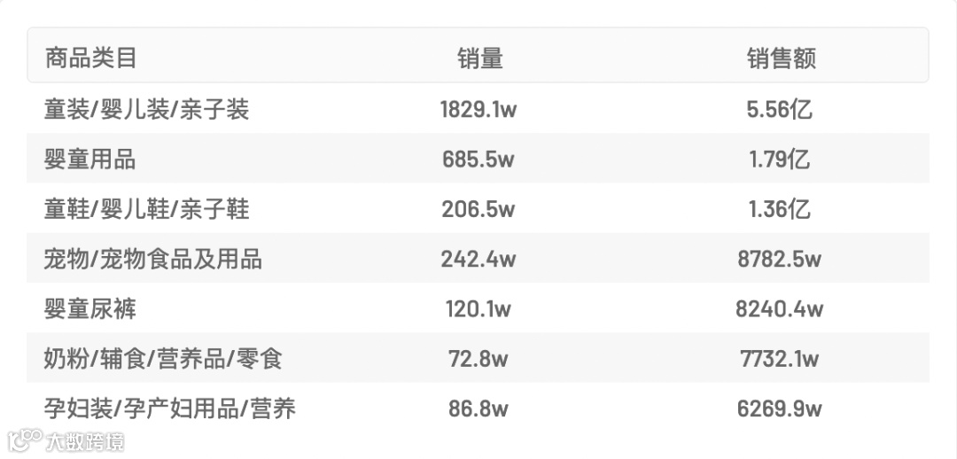 母婴宠物类目GMV环比上周有明显增长,类目涨幅为38.1%,子品类GMV占比为童装(47.06%)、婴童用品(15.16%)、童鞋类目(11.49%)、宠物(7.44%)和婴童尿裤(6.98%)等。婴童用品类目累计GMV比上周多产出2100w,类目涨幅为13.3%,细分类目儿童寝品和儿童湿巾增量分别为744.8w和414.8w。