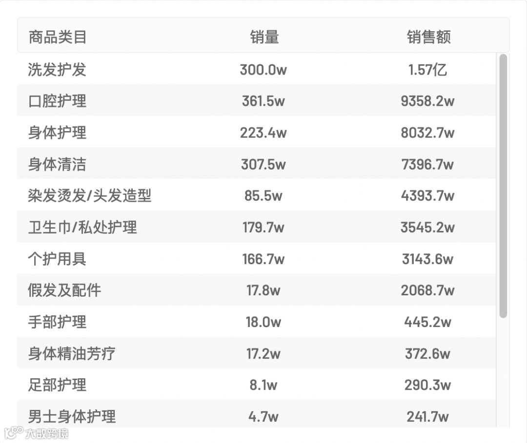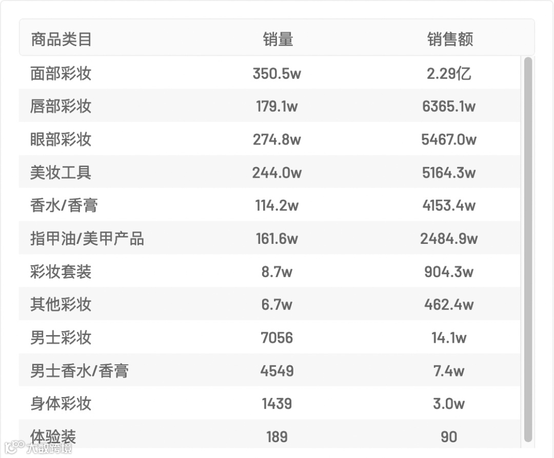 美妆品类预估GMV环比上周增长了2.4%,涨幅较小,子品类销售额占比分布为美容护肤(69.46%)、彩妆/香水/美妆工具(26.93%)、美容/个护仪器(2.98%)。美妆品类总直播场次预估达27.5w场,直播场次与上周基本持平,7月5日为本周美妆品类直播带货开播峰值,7月9日的实时观众数为本周峰值。美妆品类销售额中,面部护肤、眼部护理、防晒、面部彩妆、唇部彩妆五大类目贡献了大部分销售额,占比为83.7%(美容护肤67.3%,彩妆16.4%)。护肤类目中,面部护肤增量最大,细分类目GMV增长率为10.8%,防晒类目GMV环比下降了11.3%;彩妆类目中,面部彩妆环比GMV略有上涨,唇部彩妆和眼部彩妆预估GMV增量为640w和495w,细分类目增长率分别为11.2%和10.0%。