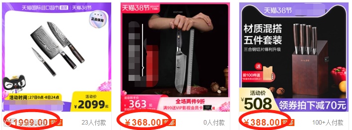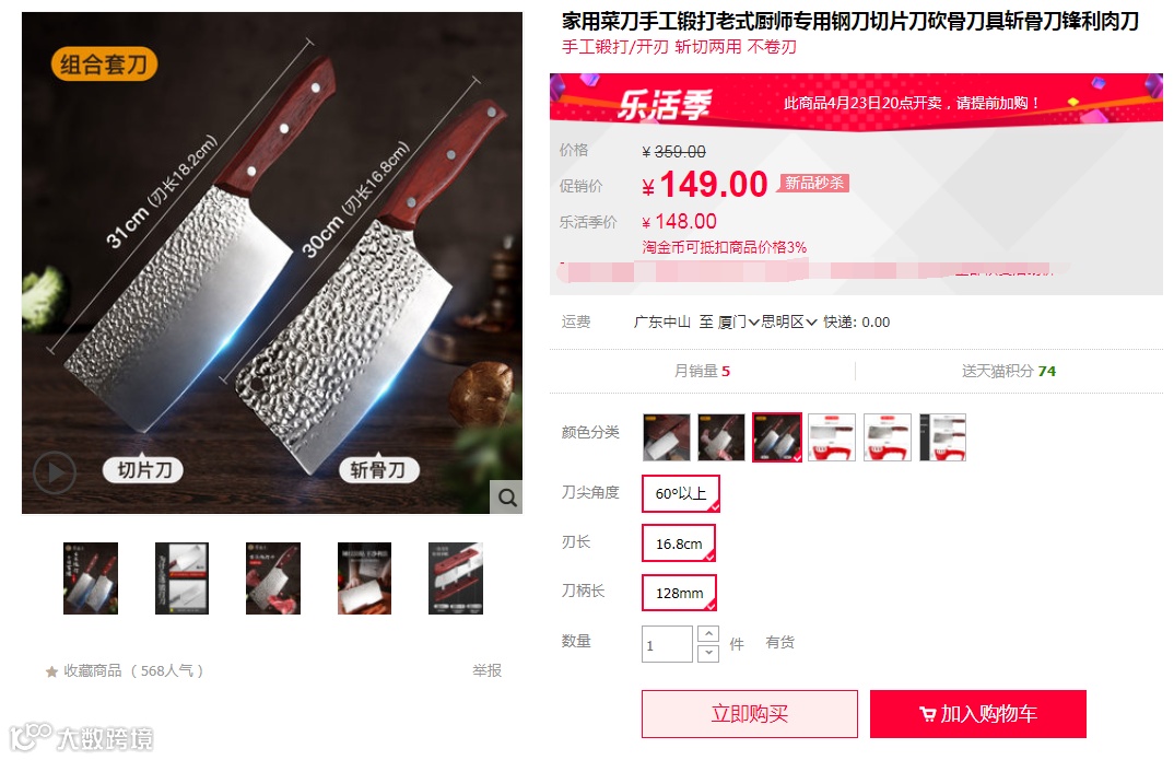 某宝店,同款刀具零售价:149元/套!