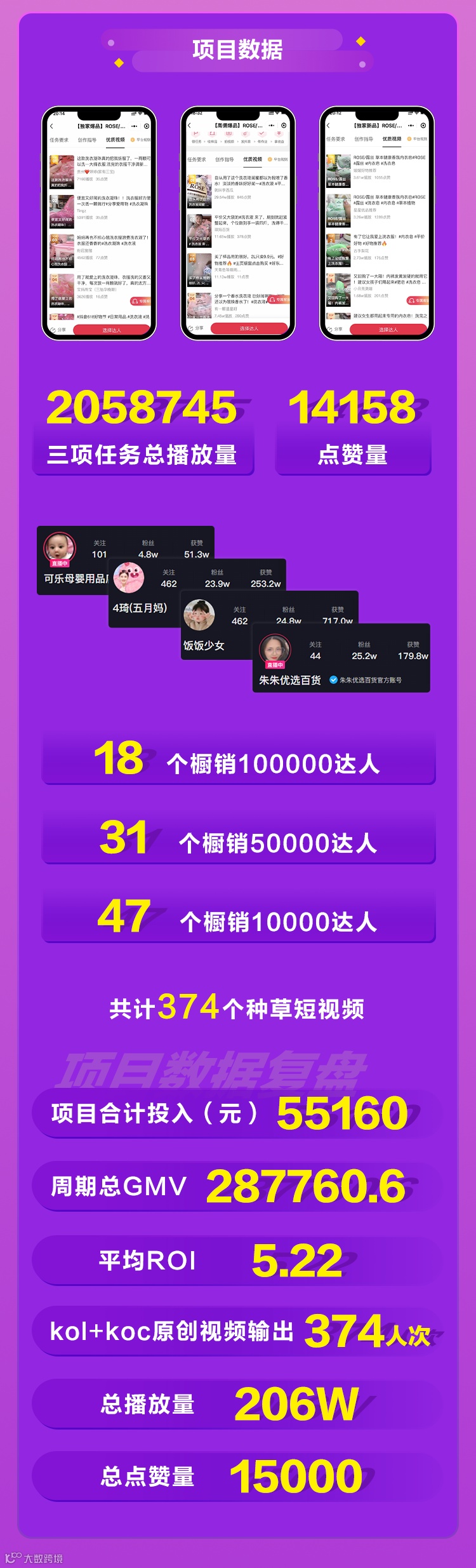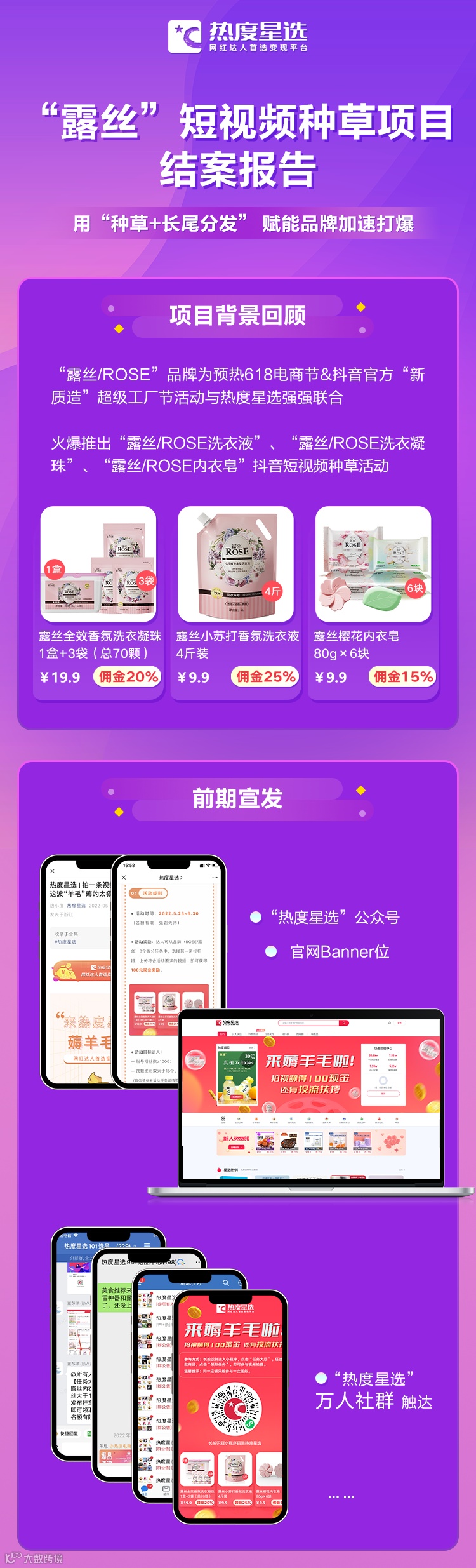 自从热度星选“短视频种草”的任务上线,不仅对品牌种草宣传起到放大的效应,也是对腰尾KOC达人的一项扶持。拍视频,发视频,播放量,出单佣金等多纬度都可以让达人朋友获得收益,人人可参与。成为“网红达人首选变现平台”这一目标,热度星选一直在努力。
