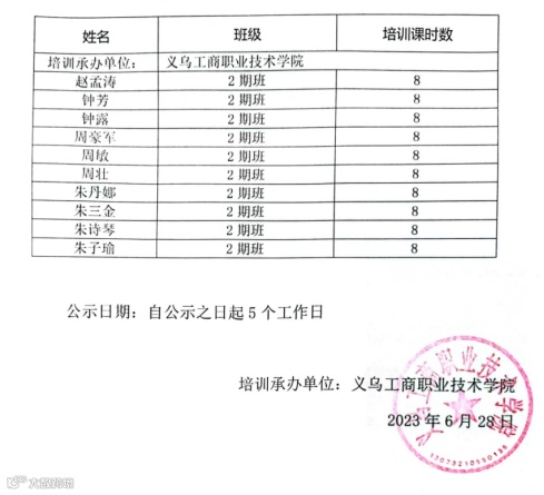 根据义乌市市场发展委员会、义乌市人力资源和社会保障局(义市场发展〔2023〕12号)、《义乌市职业技能提升行动相关培训操作指南》等文件要求,经义乌工商职业技术学院审核,现将义乌市国际陆港集团有限公司2023年电子商务项目制培训2期班培训合格人员名单予以公示,公示期间如有异议,可向义乌市陆港电子商务园区有限公司反映。