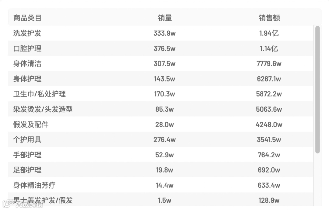 1、身体护理类目GMV环比下滑18.1%,身体乳/霜/精油/膏产品有较为明显的体量锐减。