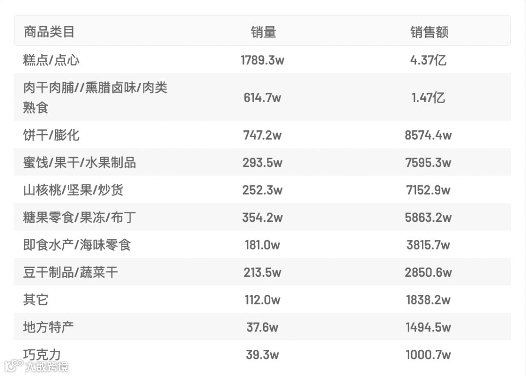 5、糕点/点心类目GMV增量为1.29亿,月饼和传统糕点均有增长,月饼产品下周将有出现明显的体量萎缩,而传统糕点热度仍会有一段时间的延续;饼干/膨化产品累计GMV与上周基本持平,未见较大波动。