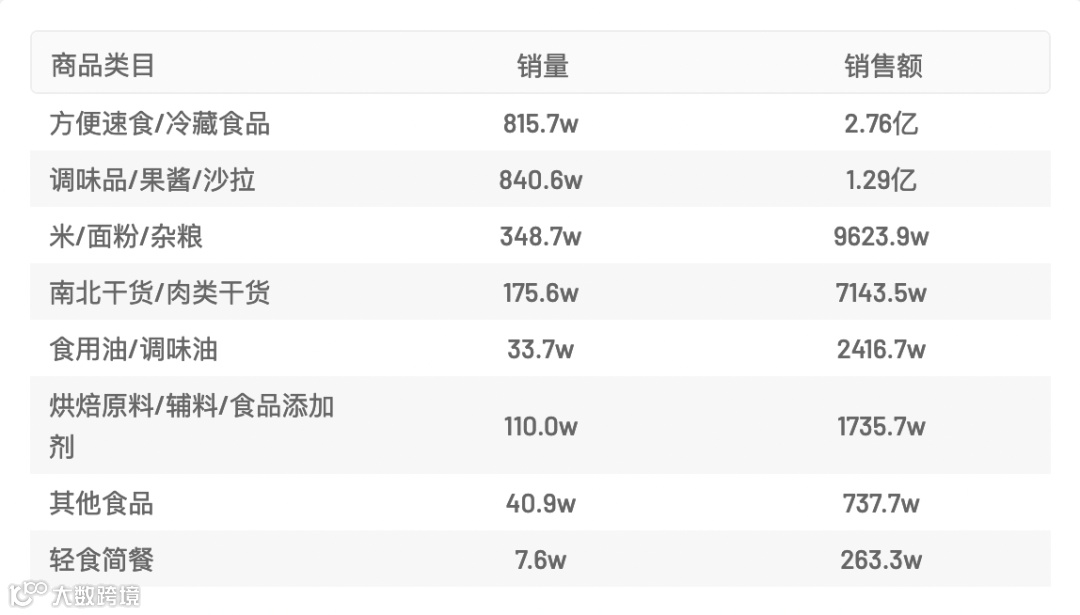 图3-粮油速食类目7日货品售卖结构(见上图)