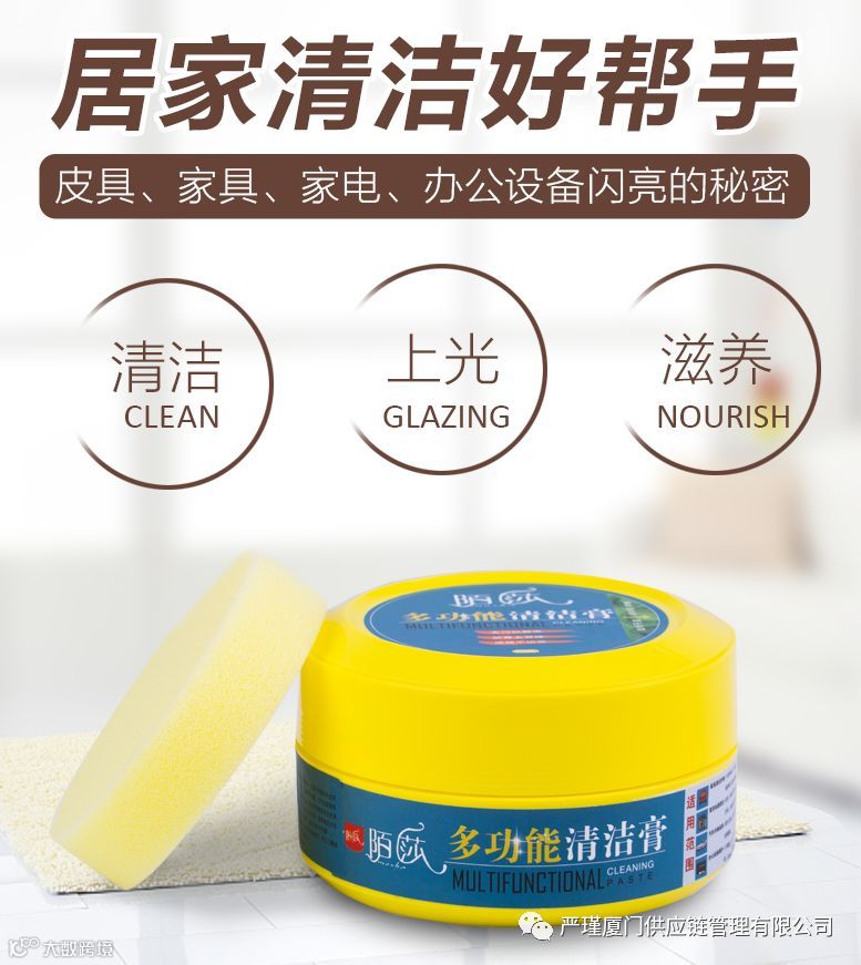 多功能清洁膏不仅只有清洁作用,它具有上光-滋养--去异味-环保等作用,多功能清洁膏的产品展示和使用效果对比图以及使用范围。