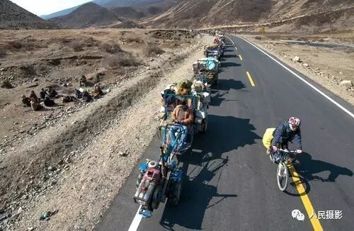 由于进山采虫草的人实在太多,当地政府按片区分流缓解交通压力,等待着放行的采虫草车队,一位骑行者行驶在318国道上,318国道起点为上海人民广场途径六省进入西藏藏族自治区,终点为西藏聂拉姆县樟木镇友谊桥,全程5476千米。2006年被中国国家地理杂志第十期评委“中国人的景观大道”路途人文文化丰富,风光之美可窥一斑。