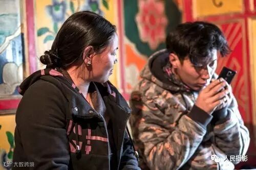 2013年,扎西正在用手机与远方的朋友通话,这个时候,这部手机是家里的唯一通讯工具,而只有扎西一个人会使用它,妻子嘉央拉姆正在好奇的看着。