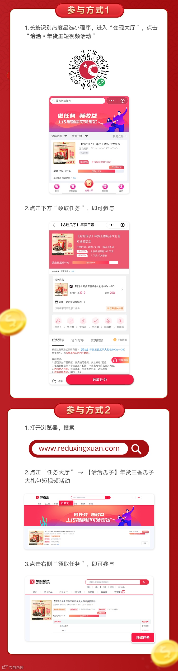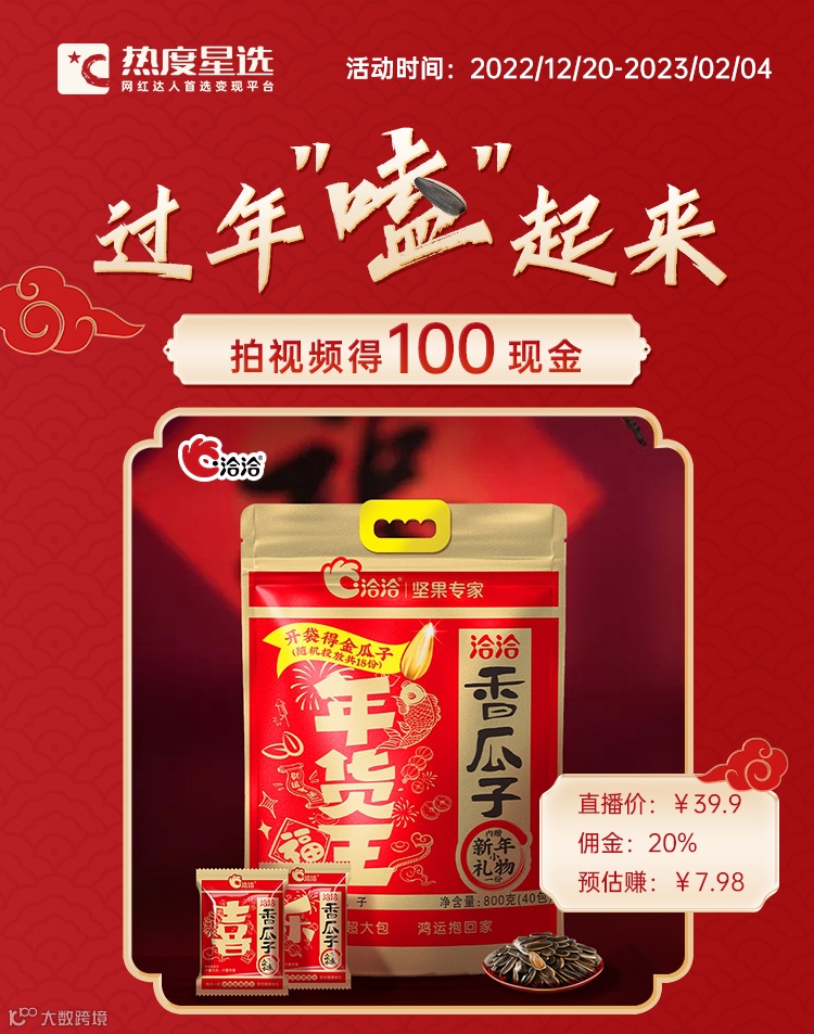 “热度星选”联合“洽洽”开启短视频活动啦~ 📱 拍视频即可获得100元现金奖励!