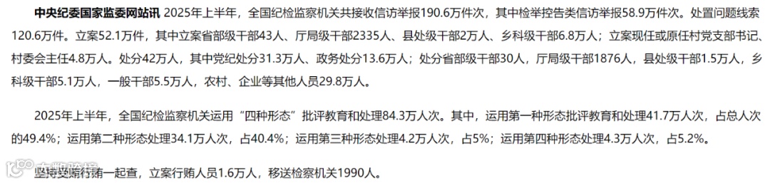 而根据中纪委国家监委的通报,今年上半年立案52.1万件,处分42万人,整肃纪律丝毫不容松懈。