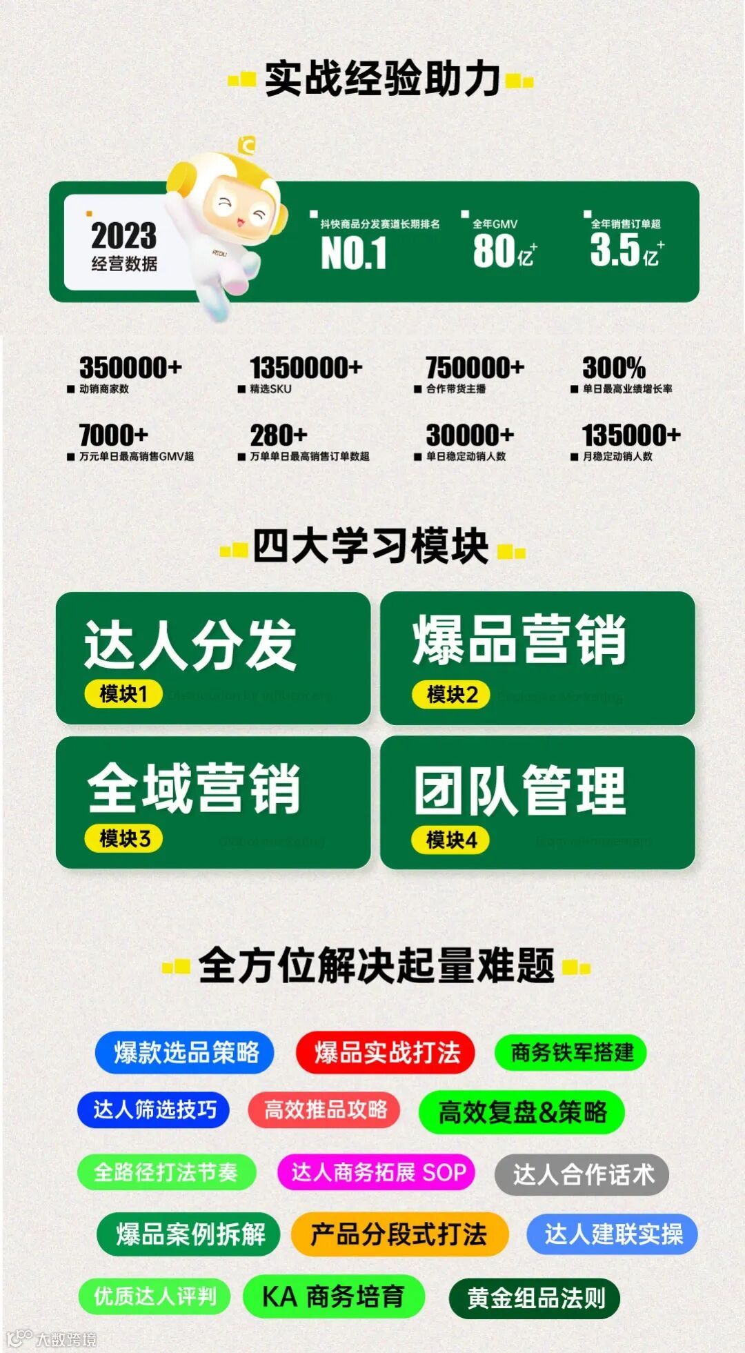 特训营的课程内容紧贴内容电商的最新趋势,涵盖达人分销的全方位知识体系:
