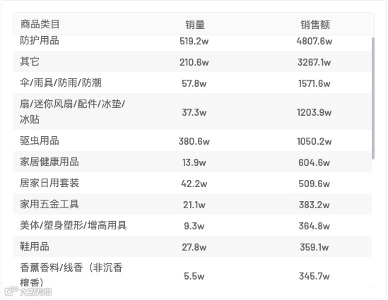 2、遮阳伞、遮阳帽、防晒服、墨镜等出游产品有明显增长;