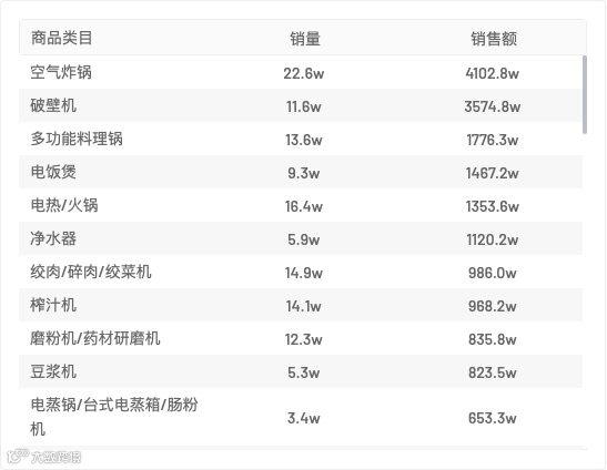 图11-厨房电器类目7日货品售卖结构(见上图)