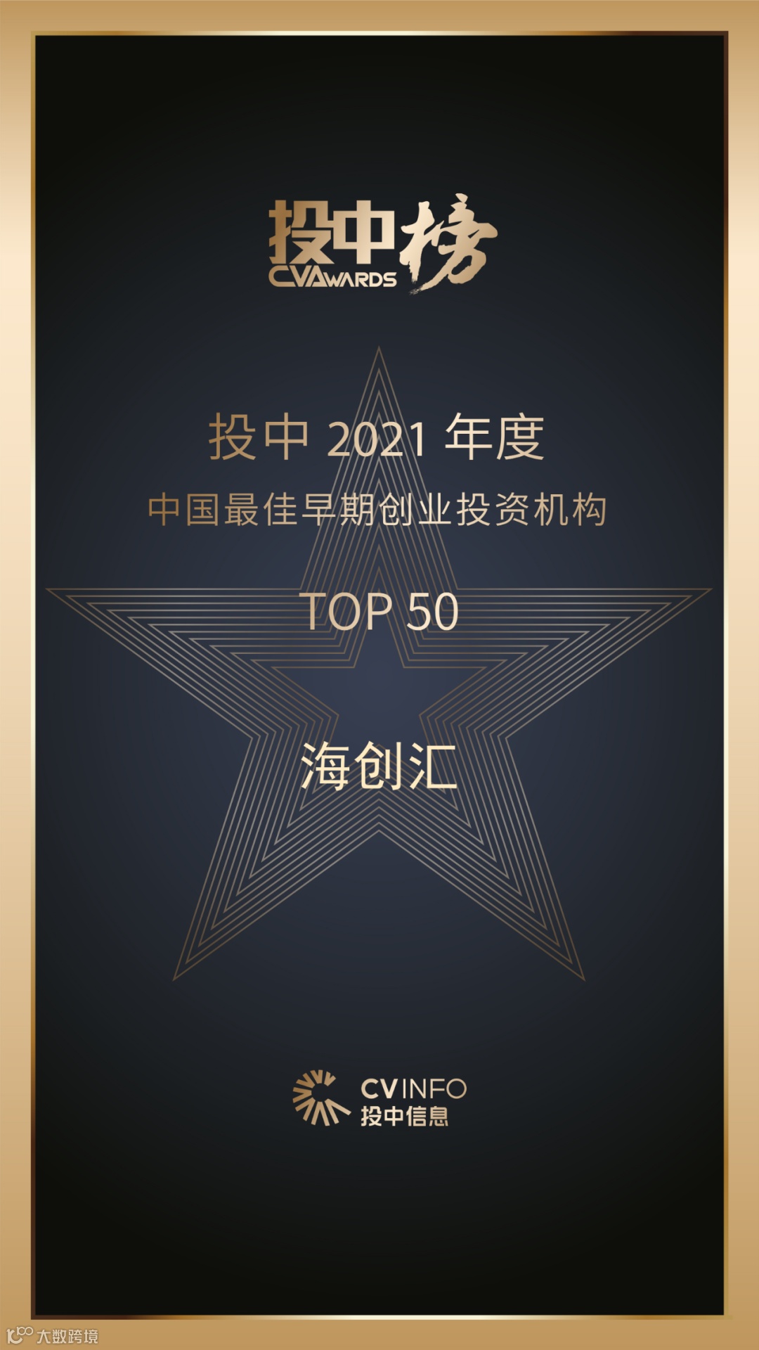 5月30日,投中研究院发布投中2021年度榜单,海创汇荣获2021年度中国最佳早期创业投资机构奖项。