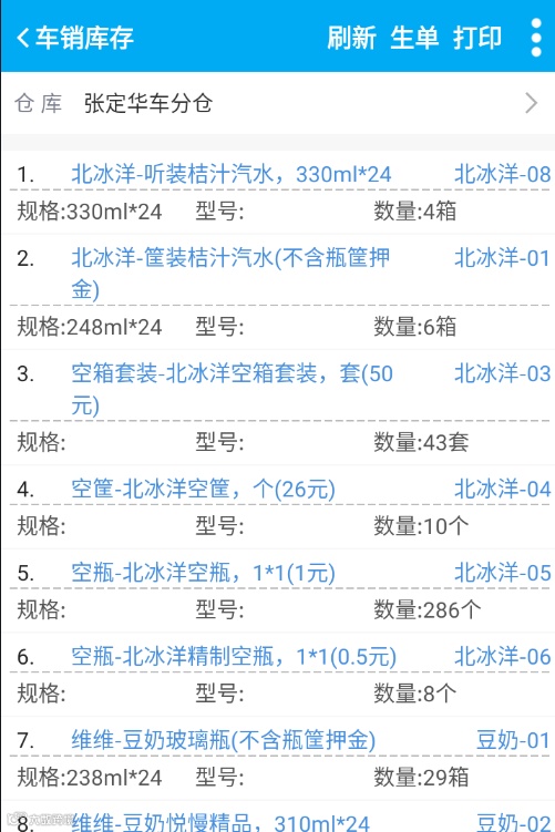 2、瓶装饮料都是整件销售,商品体积较大,加上还有瓶子回收,一辆车大概只能送2-3位客户,需要业务员频繁回到仓库进行调拨出入库作业,仓库文员的工作量也随之增加。