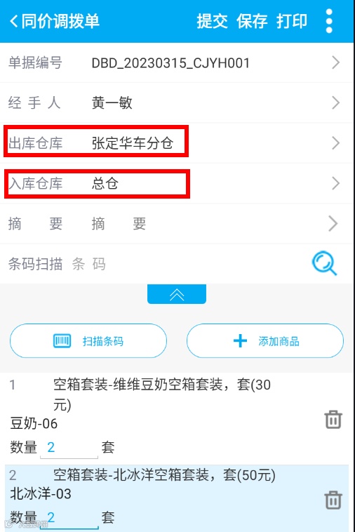 调拨工作交给业务员,使用APP自行完成,仓库文员只需要对单据进行审核即可,减轻库房文员的工作量,加快了调拨工作的效率。