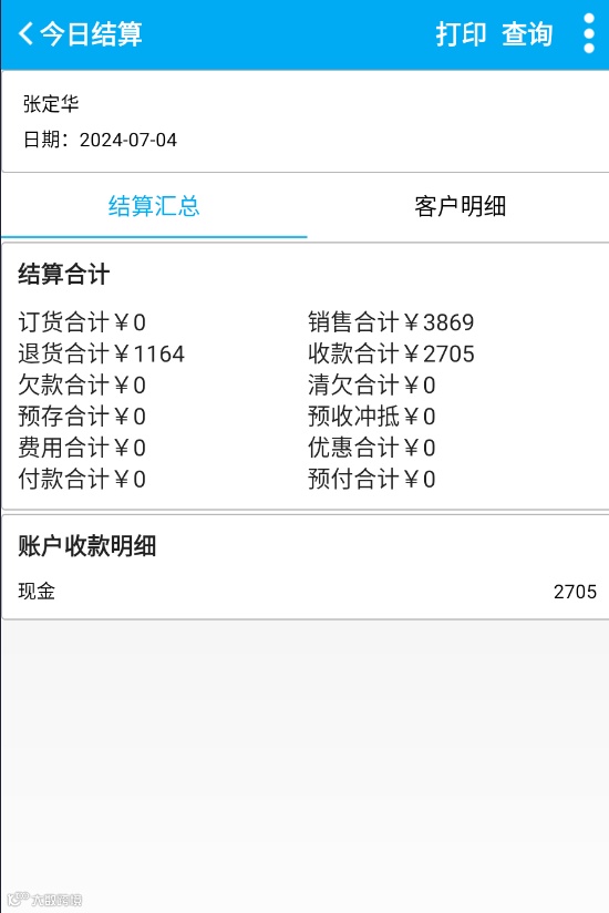 业务结束后,业务员可按照今日结算,来查看自己今天的实际收款记录,也可看到每个客户的收款明细;让疲惫一天的业务员回到公司后,快速的与财务进行对账。