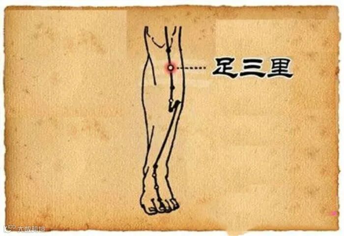 足三里(外膝眼直下3寸处)是“足阳明胃经”的主要穴位之一,每日按揉50~100次,能健脾和胃、调中理气、导滞通络,适用于各种类型的脾胃病变。