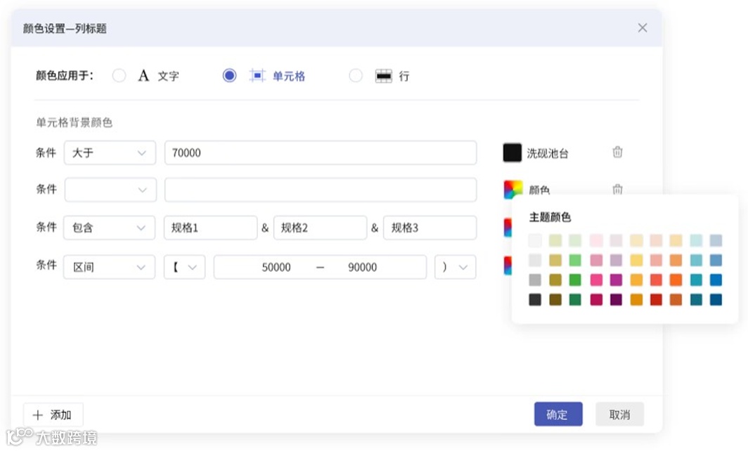 2.支持对报表数据的【文字颜色】【单元格颜色】或【行背景色】进行标注(三种方式选一种),40种颜色可随意搭配