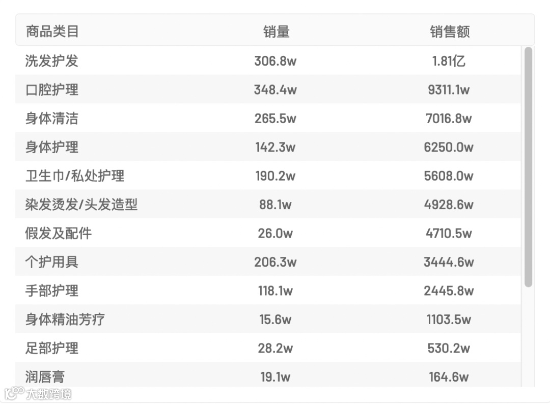 美妆品类行业数据