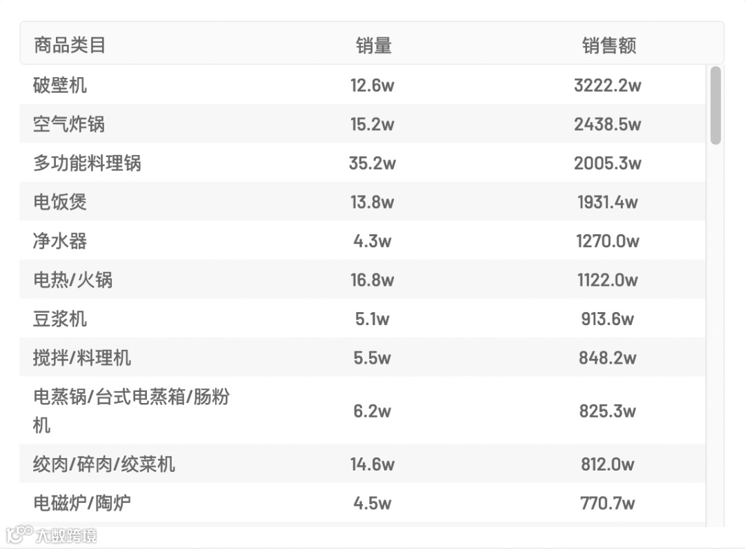 8、生活电器类目GMV环比增长了25.6%,洗地机产品增量明显;厨房电器类目GMV环比下滑了8.7%,多功能料理锅、空气炸锅和破壁机产品有一定的下降。