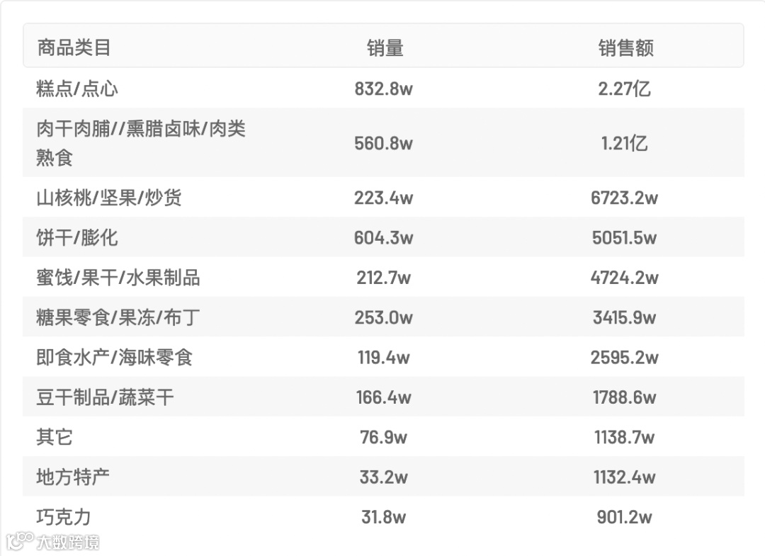 食品品类行业数据