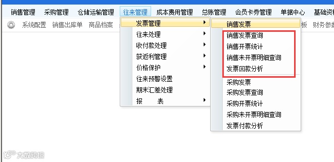 在截图这些报表里面可以查询到销售发票数据,销售发票只会影响发票管理下面的这些报表数据,不影响其他进销存数据。