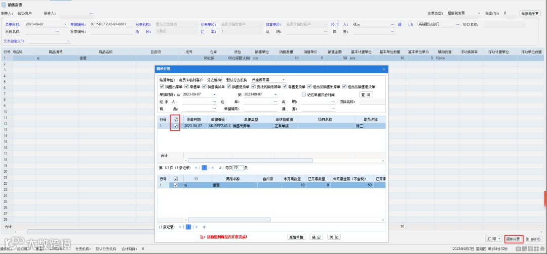 以销售发票为例,做销售出库单勾选【参与开票】,此选项是默认勾选的。