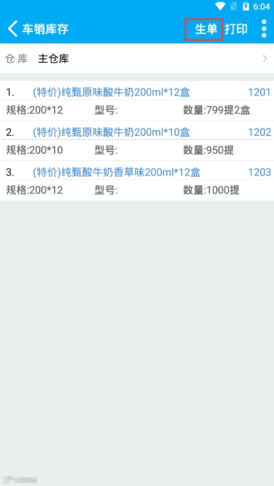 按销售量生单:用于早上快速装车出库,通过昨日业务员的销售情况生成一张入库仓库为【车库】的同价调拨单,实现快速从主仓库调拨到车库的应用。