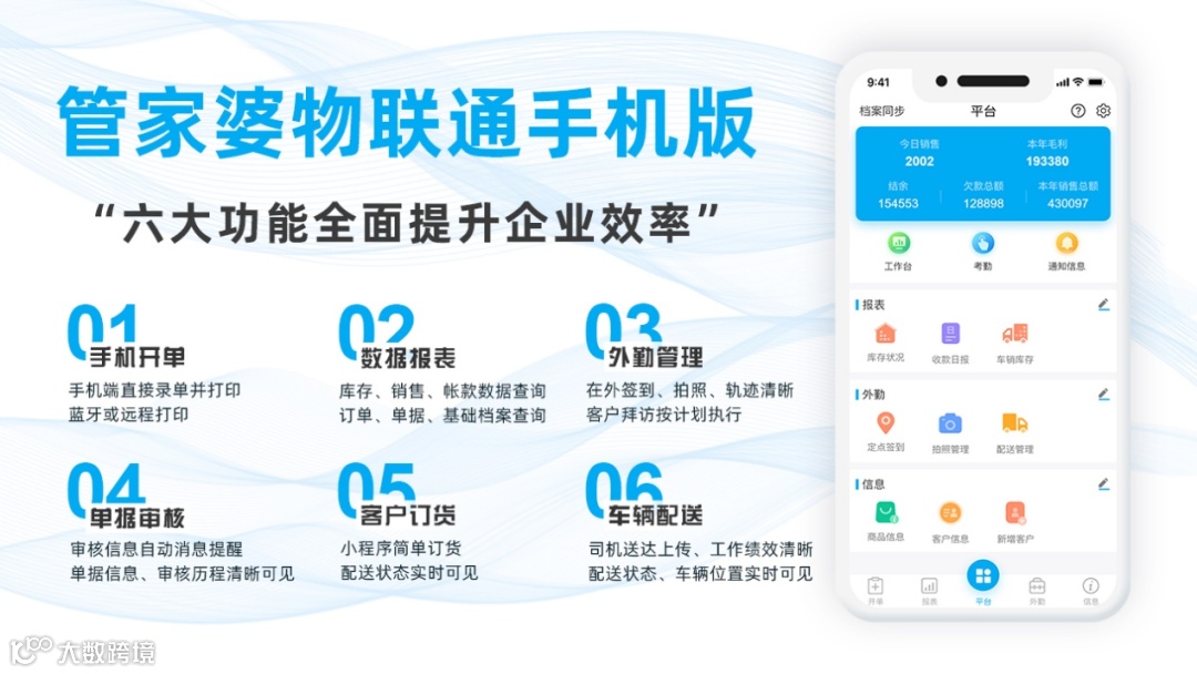 物联通车销管理帮您规范车销流程,移动手机抄单,打印蓝牙小票,开单实时查看客户往来账款,知晓促销与历销数据,并可在车载库存中实时查看我的车上还有多少货可以卖,早晚可以一键调拨快速装车与还货,助您轻松管理车销业务。