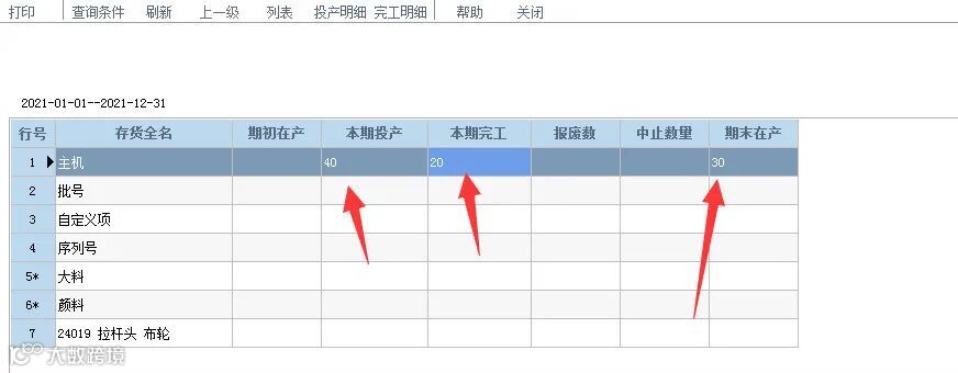 答:这是因为客户有超额完工的验收单,本期完工会将超额完工的数量一并统计,但是期末在产则不会统计超额完工的部分;客户可以在对应的明细表中查看具体情况,如下图: