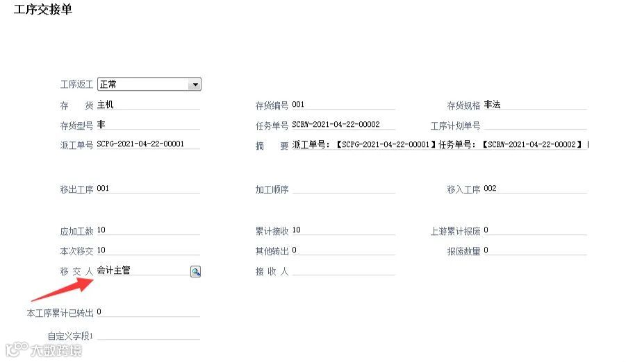 3、设置后可正常做工序交接单,选择对应移交人,保存后就可自动生成工票。