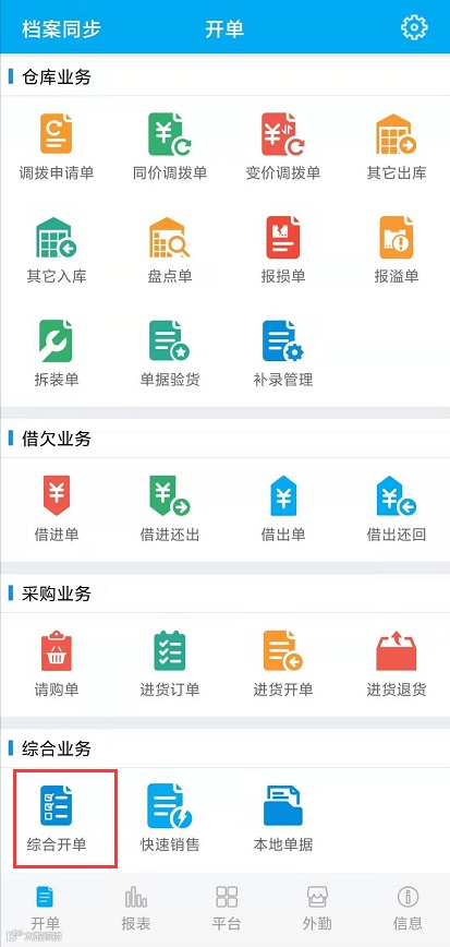 物联通安卓手机端选择综合开单