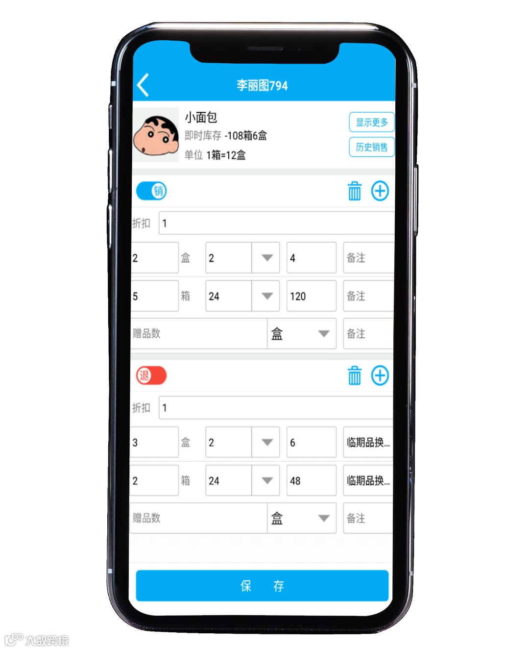 物联通快速销售只需一张单据,即可实现销售、退货、换货三种单据的录入。