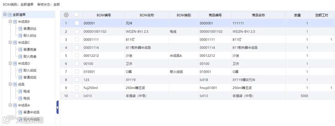 工贸ERP可以对BOM按照成品、半成品或者存货类别等进行分类,便于管理及查询。