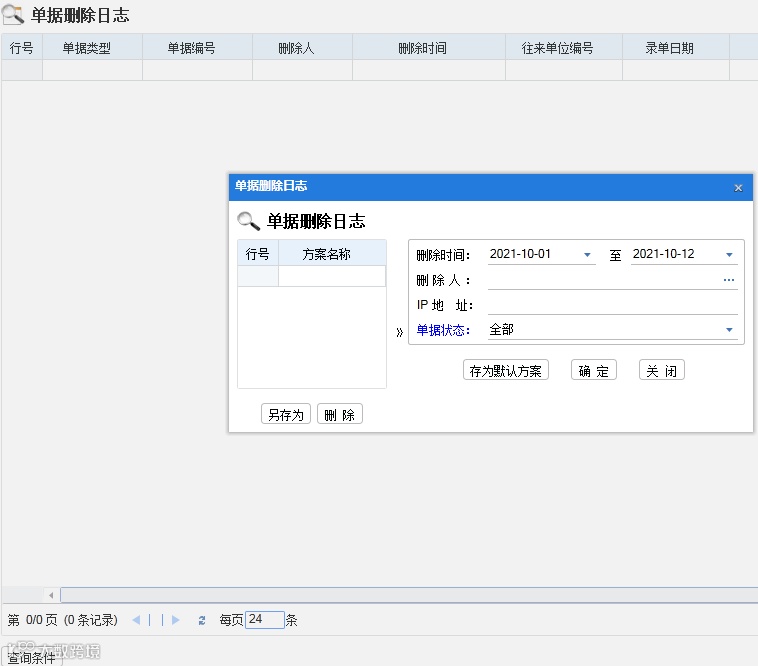 5、软件贴心的在【系统管理→安全设置】下新增【单据删除日志】功能菜单,可以查看单据的删除日志记录。