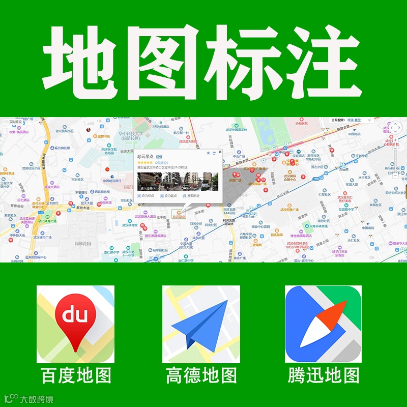 百度地图、高德地图、腾讯地图、微信(发送位置、朋友圈)、QQ位置、IOS苹果地图、搜狗地图、360地图、凯立德地图、手机APP地图、微博地图、抖音地图、快手地图、火山地图、小红书、大众点评、美团位置等二十余款主流地图标注。