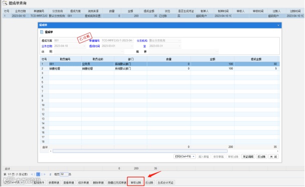 成本费用管理——提成管理——高级提成——提成单查询,提成计算后系统会根据每个职员的提成金额生成一张提成单,也可手工新增提成单,该单据需要点击审核过账后提成报表统计中才会有相关统计。如下图:
