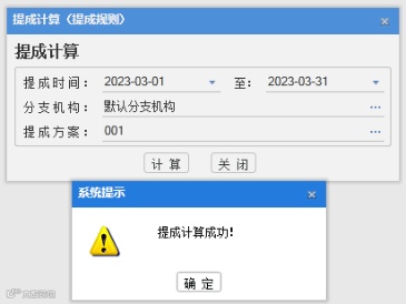 当有对应条件销售业务发生后:成本费用管理——提成管理——高级提成——提成计算(只对提成方案中涉及到的提成规则对应的业务数据进行提成计算)---点击计算。如下图:
