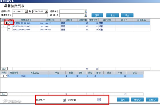 挂账后点击确定,就会跳出往来单位选择框,选择对应的单位,这个零售的欠款就会挂到这个单位中