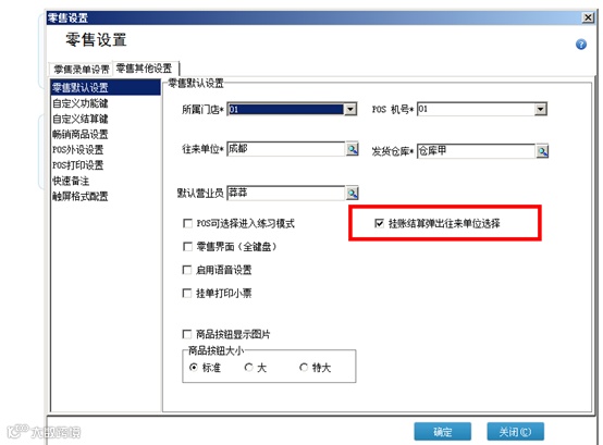 如果后续都是这个单位挂账,就可以勾选【下次不再提示】,如果不小心勾选或者已经勾选想要选择其他单位,就可以在零售其他设置中勾选【挂单结算弹出往来单位选择】