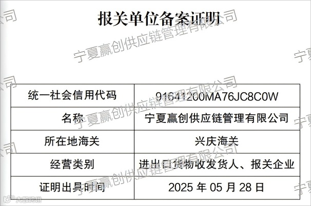 在丰盛光明的六月,宁夏赢创正式取得危化品进出口贸易资质,标志着宁夏赢创正式跻身危化品国际贸易服务领域。即日起,公司将依托专业资质与供应链管理优势,为国内外客户提供覆盖危化品贸易全链条的专业服务,全面开启进出口业务新篇章!