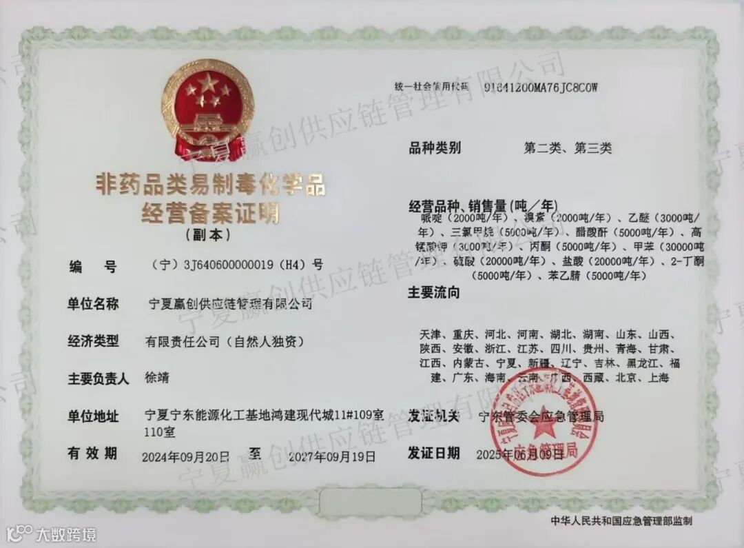 新资质,新起点,新机遇!宁夏赢创诚挚邀请国内外合作伙伴携手共进,共享全球危化品贸易新商机。
