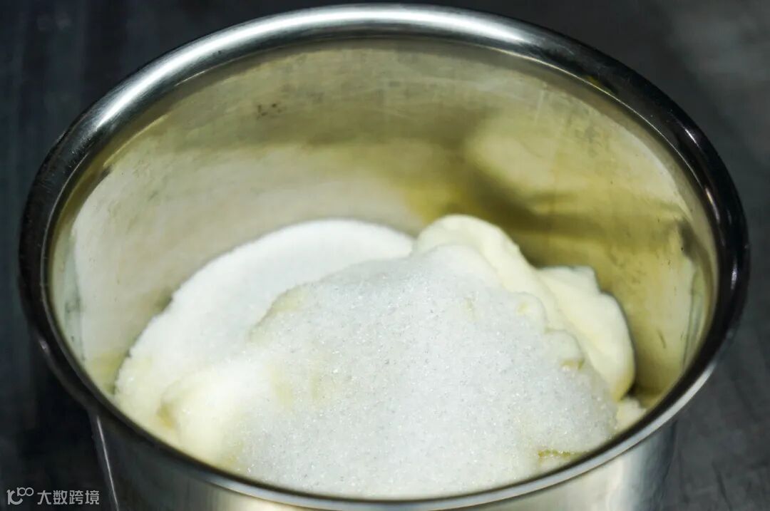 2.长柄锅中放入酸奶油与幼砂糖a,在电磁炉上加热至50度左右。