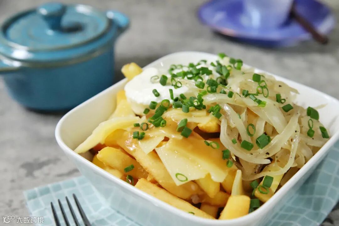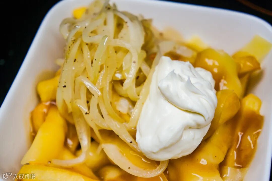 今天给大家种草一款“加拿大国菜”芝士肉汁薯条~Poutine是加拿大魁北克的传统小吃,刚出锅的粗薯条,铺上满满的芝士,最后淋上滚烫的秘制肉肉汁。薯条和肉汁的热气将芝士轻轻融化,肉汁浸满薯条、芝士包裹着薯条…三种食材的融合显得相得益彰,令食客们难以抗拒。
