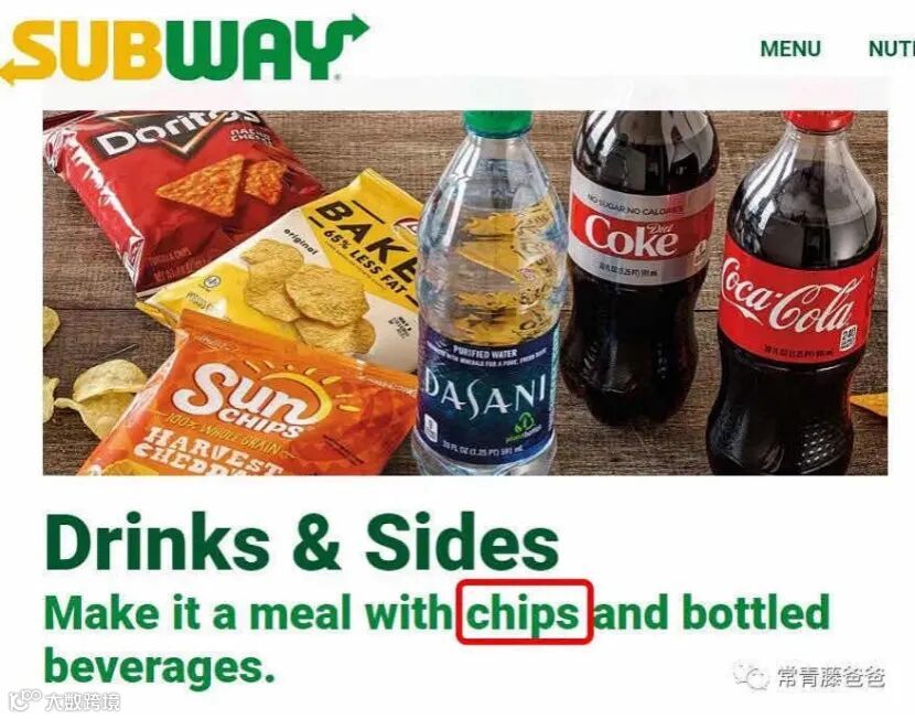 可是当你跑到美国的餐厅点一份chips时,你会得到一份薯片…