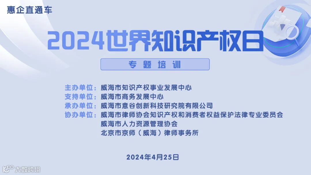 2024年4月26日是第24个世界知识产权日,今年的主题为“知识产权转化运用促进高质量发展”。为助力企业科技创新,提升新质生产力,4月25日,意谷研究院联合威海市知识产权事业发展中心、威海市商务发展中心、威海市律师协会知识产权和消费者权益保护法律专业委员会、威海市人力资源管理协会、北京市京师(威海)律师事务所共同举办
