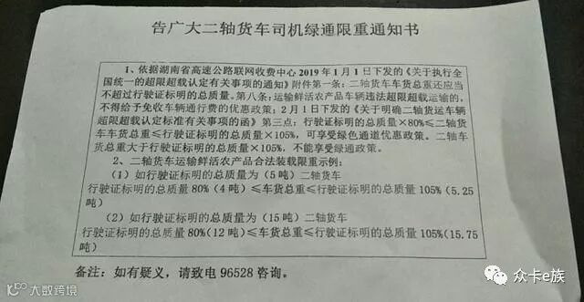 蓝牌轻卡货车超载的问题屡禁不止,很多车主都表示根本不知道按照什么标准来判定超载的。有卡友认为不超过18吨就不算超载,但近期,跑湖南绿通的不少卡友都收到了关于二轴货车运输路通的新政策。
