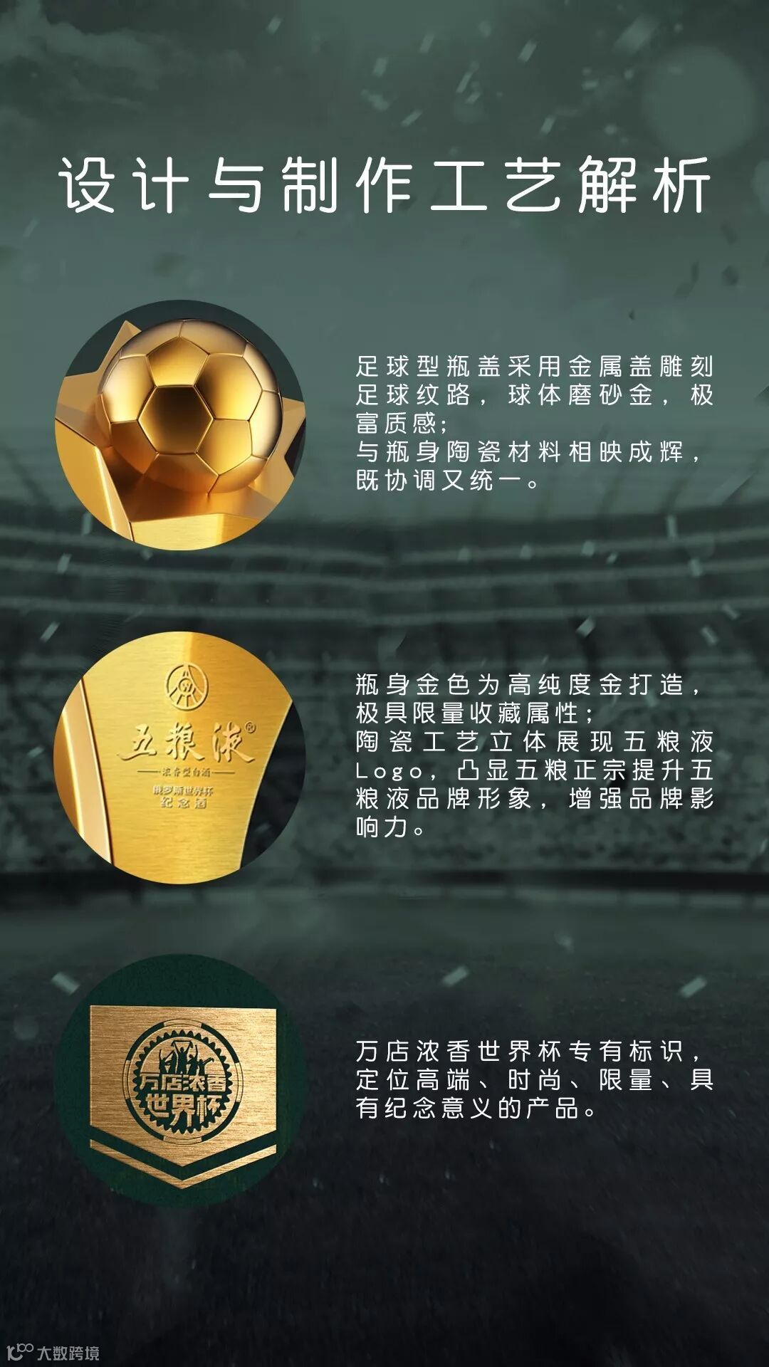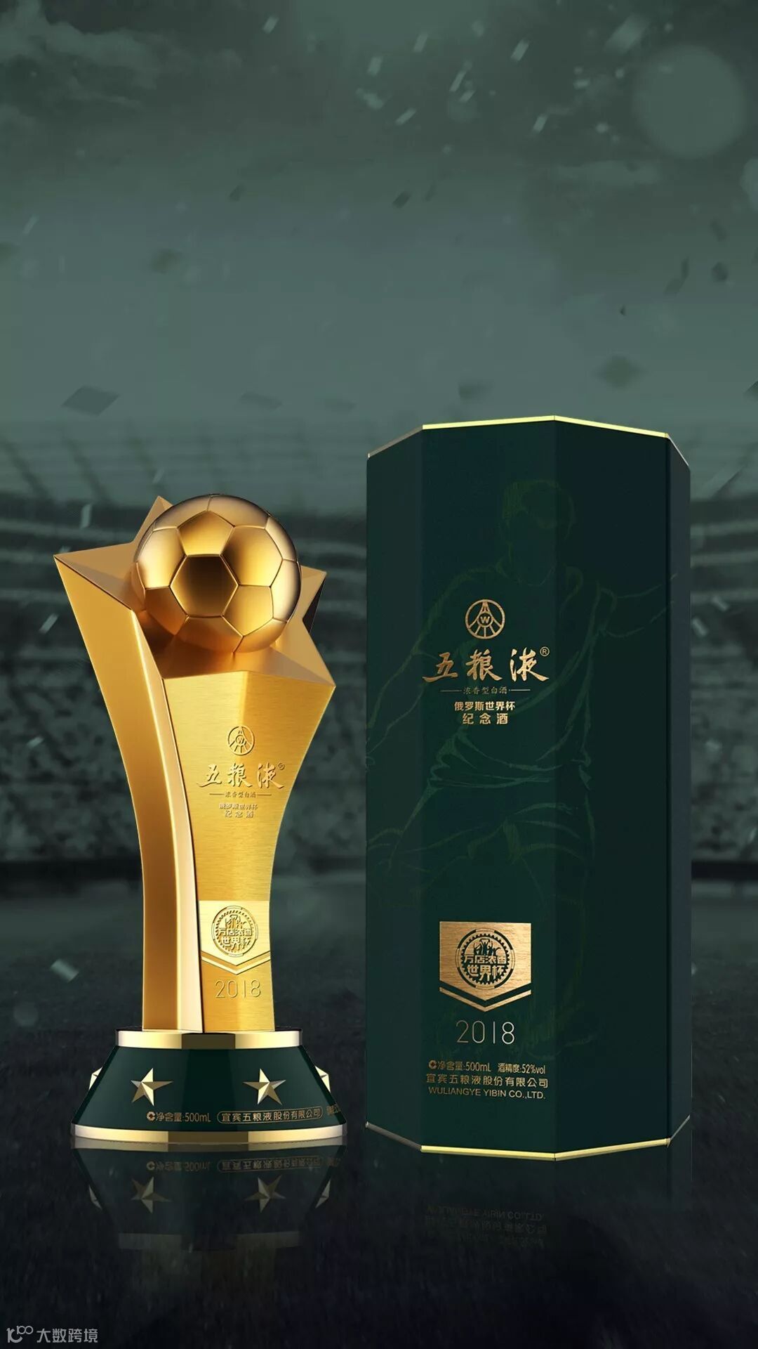 上海高诚创意科技集团也专为五粮液定制了一款极具视觉效果、高端、个性、限量、珍藏的俄罗斯世界杯纪念酒。
