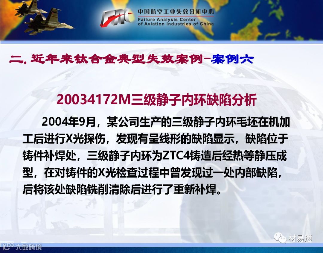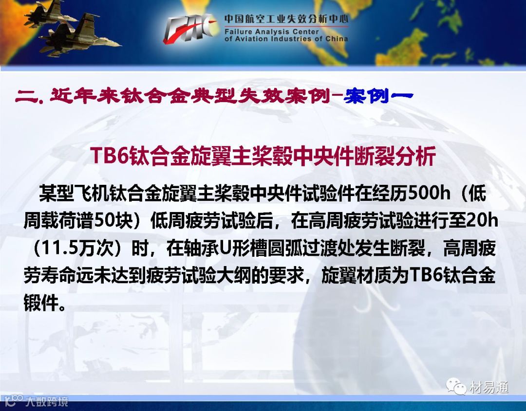 钛合金在航空工业中很常见,今天小编分享一份钛合金典型失效案例PPT,花钱也买不来的经验,一定对你有所帮助。