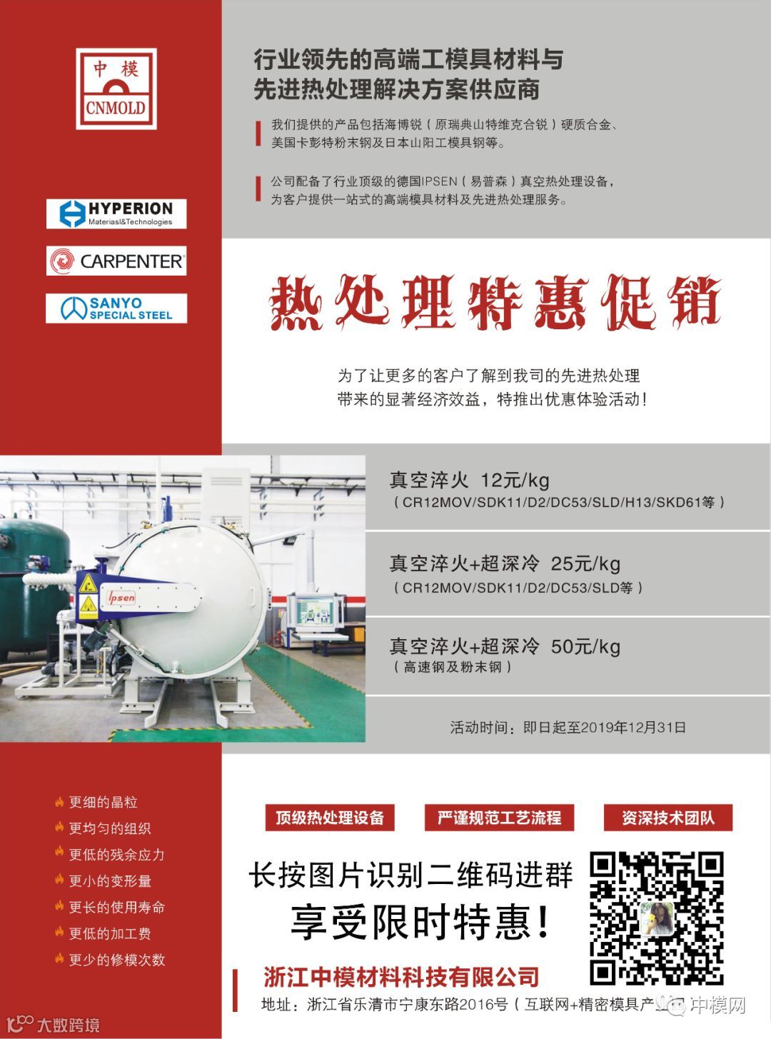 即日起至2019年12月31日,通过下方图片扫描图片二维码进群即可享受超低价热处理优惠!